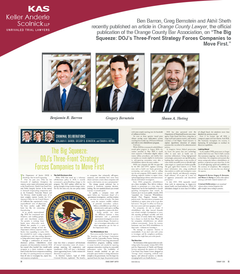 Ben Barron, Greg Bernstein and Shaun Hoting publish article in Orange County LawyerKevin Brown2026-02-03T00:49:40+00:00Recent News|